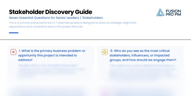 7 essential questions to draw out strategic alignment, expectations, and constraints from your senior leaders and stakeholders, early in the project lifecycle, before problems arise.